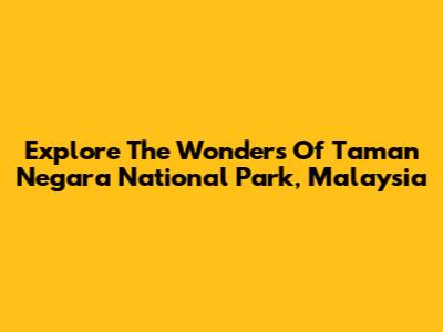Explore The Wonders Of Taman Negara National Park, Malaysia