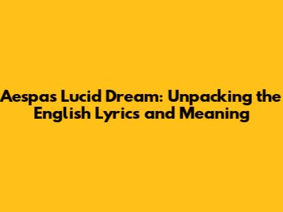 Hey guys! Ever found yourself totally vibing with a song, but you're kinda lost on what it's actually about? That's how I felt when I first heard Aespa's "Lucid Dream." The song's a bop, no doubt, but diving into the English lyrics? That's where the real magic happens. So, let's break down this amazing track, dissect those lyrics, and figure out what Aespa is trying to tell us through their dreamy soundscape. We'll get into the nitty-gritty, exploring the themes, imagery, and overall message that makes "Lucid Dream" such a captivating piece of art. Get ready to have your mind blown as we explore the depths of Aespa's lyrical genius. Let's explore how these lyrics capture the feeling of being in a lucid dream, where the lines between reality and fantasy blur, leaving you questioning what's real and what's not. The song uses vivid imagery and metaphors to paint a picture of a dreamlike state, drawing listeners into its surreal world. Aespa's delivery of the lyrics adds another layer of depth, conveying a sense of longing, confusion, and wonder that perfectly complements the song's ethereal sound. Through their voices, they bring the emotions of the lyrics to life, making the listening experience even more immersive and captivating. So, buckle up, grab your headphones, and let's get started on this journey into the world of Aespa's "Lucid Dream." By the end of this article, you'll not only understand the lyrics but also appreciate the artistry and creativity that went into creating this unforgettable song.