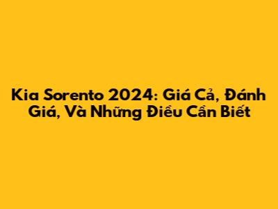 Kia Sorento 2024: Giá Cả, Đánh Giá, Và Những Điều Cần Biết