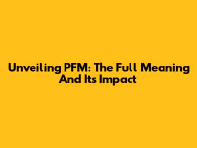 Unveiling PFM: The Full Meaning And Its Impact