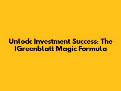 Unlock Investment Success: The IGreenblatt Magic Formula