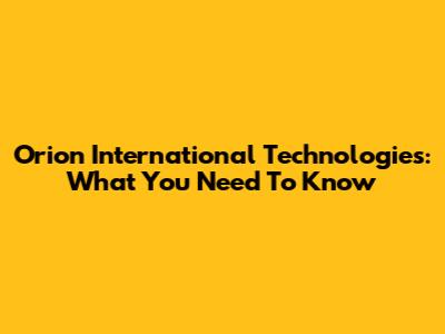 Orion International Technologies: What You Need To Know