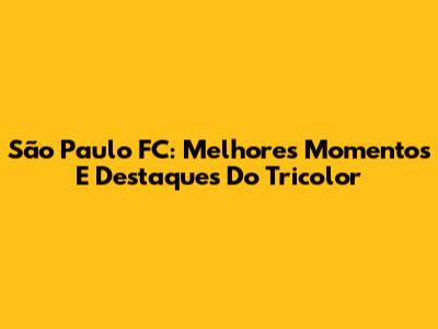 São Paulo FC: Melhores Momentos E Destaques Do Tricolor