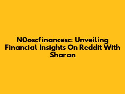 N0oscfinancesc: Unveiling Financial Insights On Reddit With Sharan