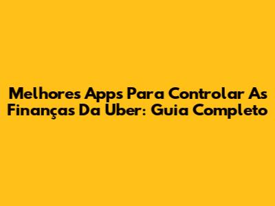 Melhores Apps Para Controlar As Finanças Da Uber: Guia Completo