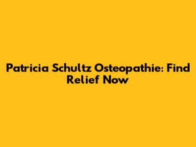 Patricia Schultz Osteopathie: Find Relief Now