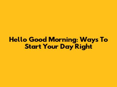 Hello Good Morning: Ways To Start Your Day Right