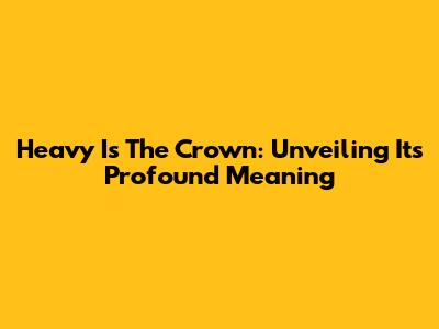 Heavy Is The Crown: Unveiling Its Profound Meaning