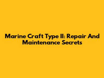Marine Craft Type II: Repair And Maintenance Secrets