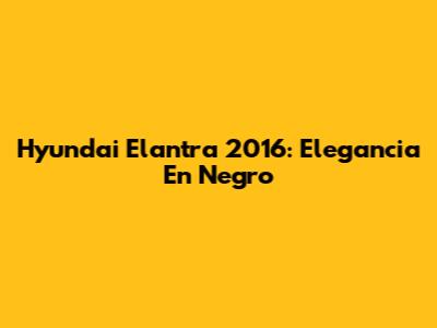 Hyundai Elantra 2016: Elegancia En Negro