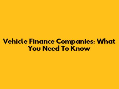 Vehicle Finance Companies: What You Need To Know