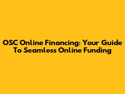 OSC Online Financing: Your Guide To Seamless Online Funding