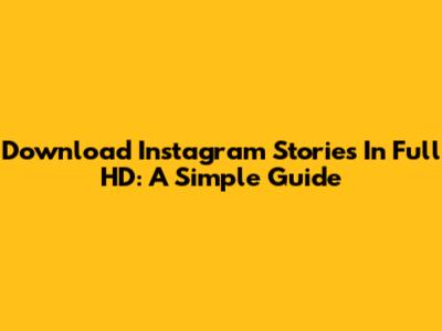 Download Instagram Stories In Full HD: A Simple Guide