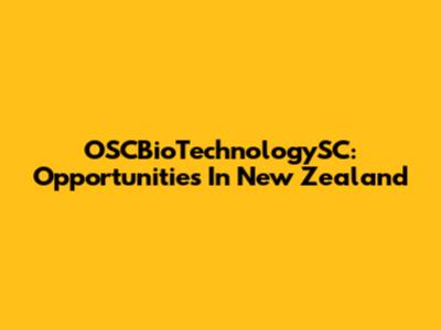 OSCBioTechnologySC: Opportunities In New Zealand