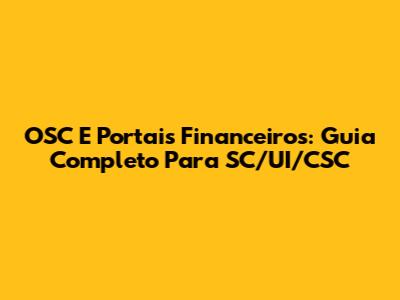 OSC E Portais Financeiros: Guia Completo Para SC/UI/CSC
