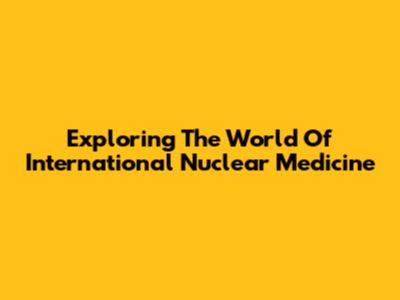 Exploring The World Of International Nuclear Medicine