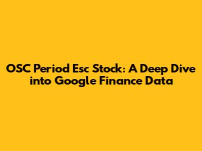 Hey everyone, let's talk about OSC Period Esc stock! If you're anything like me, you're always on the lookout for interesting investment opportunities. And if you've been doing your research, you've probably stumbled upon this ticker and are curious to learn more. It's time to dive deep into OSC Period Esc stock and use Google Finance data to get a better understanding. We're going to break down everything from what the company does, its financial performance, to where you can find the most relevant information using Google Finance. Get ready to geek out with me on the details, because understanding this stock is key to making informed investment decisions. This isn't just about throwing money at something; it's about smart investing! If you're new to this whole thing, don't worry, I'll explain everything. Let’s get started and break down everything about this fascinating stock and how Google Finance can be your best friend in this journey. Also, we will use it as an opportunity to review the key metrics and analysis tools that Google Finance provides to help you make informed decisions. We'll explore how you can find the financial data, news, and insights you need to understand this stock, and how to assess its potential.