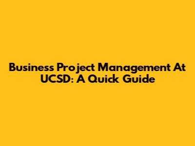 Business Project Management At UCSD: A Quick Guide
