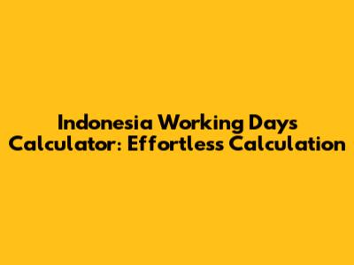 Indonesia Working Days Calculator: Effortless Calculation