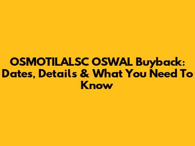 OSMOTILALSC OSWAL Buyback: Dates, Details & What You Need To Know