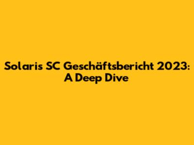 Solaris SC Geschäftsbericht 2023: A Deep Dive