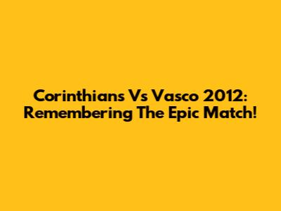 Corinthians Vs Vasco 2012: Remembering The Epic Match!