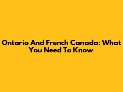 Ontario And French Canada: What You Need To Know