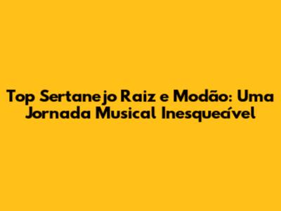 Top Sertanejo Raiz E Modão: Uma Jornada Musical Inesquecível