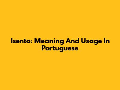 Isento: Meaning And Usage In Portuguese