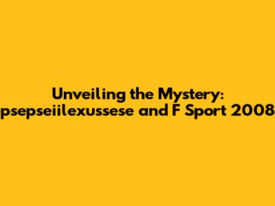 Hey guys, let's dive into something a little offbeat today: psepseiilexussese and F Sport 2008. I know, I know, the name "psepseiilexussese" might sound like something out of a sci-fi novel, but trust me, we're going to unravel this and figure out what it all means, especially in connection to the F Sport lineup from 2008. Buckle up; this is going to be a fun ride!