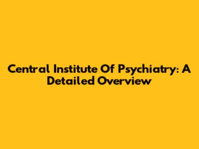 Central Institute Of Psychiatry: A Detailed Overview